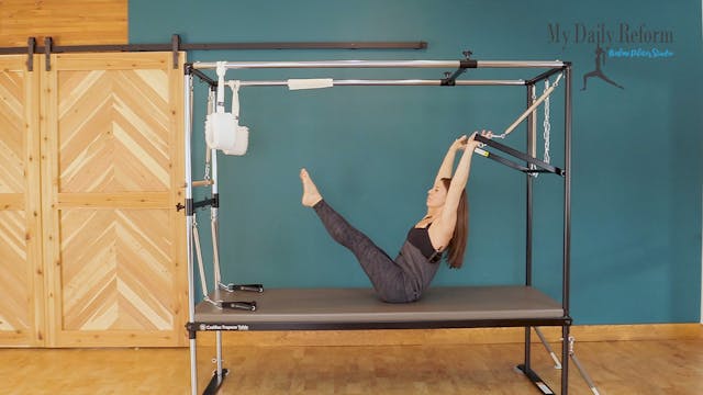 Join Gabrielle for this Pilates Studio Abdominal and Arm focused workout on the Cadillac. Essential/Intermediate Level 30 minute Workout.